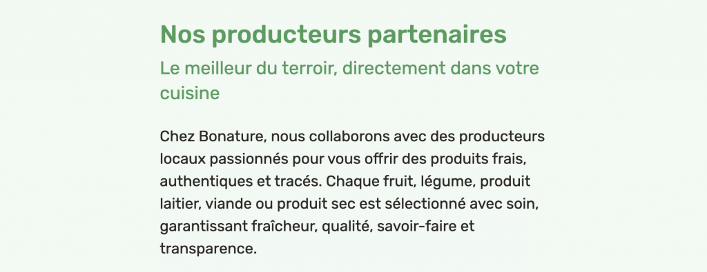 Que Bonature n’est pas seulement une plateforme, mais un e-commerce B2B 100 % local : un pont durable entre celles et ceux qui produisent avec exigence et celles et ceux qui cuisinent avec sens.